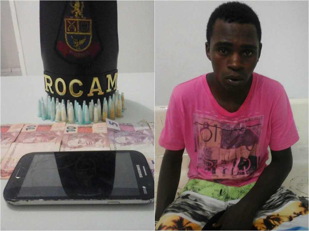 “Ao chegar no cruzamento das ruas Américo Davoli e Domingos Jorge Velho, deparamos com um adolescente de 17 anos, ele percebeu a presença de nossas motos e jogou uma sacola plástica em um terreno. A sacola continha vários pinos com cocaína e crack”, explicou o policial militar Renato Nonato.