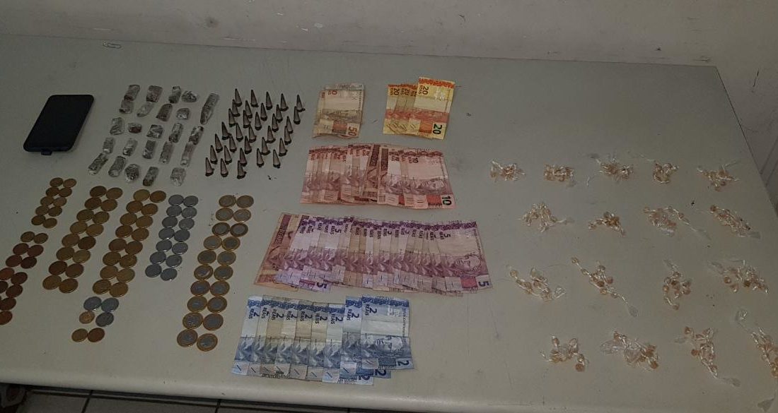 O outro homem estava com outra sacola com 33 pinos com cocaína, 25 porções de maconha e R$ 37,85. A dupla confessou que estava vendendo entorpecentes.