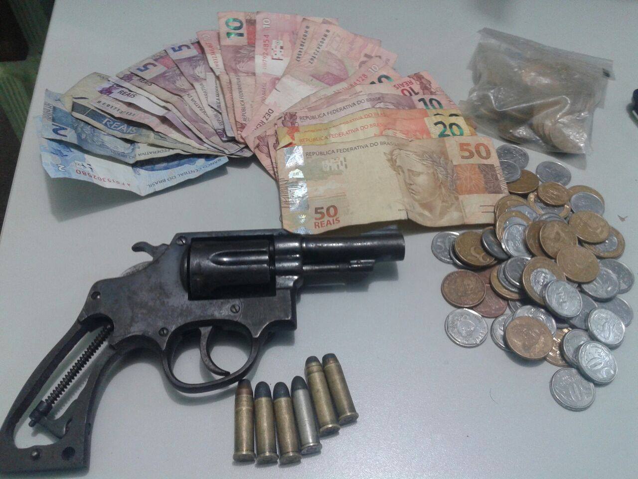Arma e dinheiro apreendidos (Foto: Divulgação)