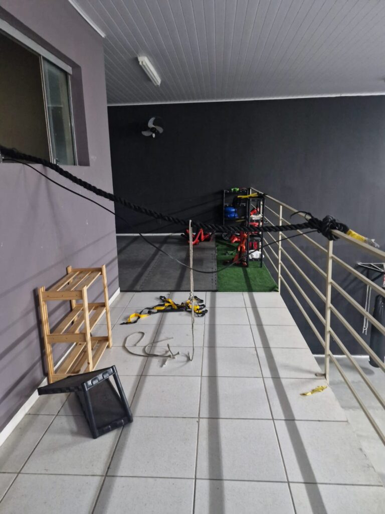 Corda da própria academia foi usada para içamento de objetos (Foto: Marília Notícia)