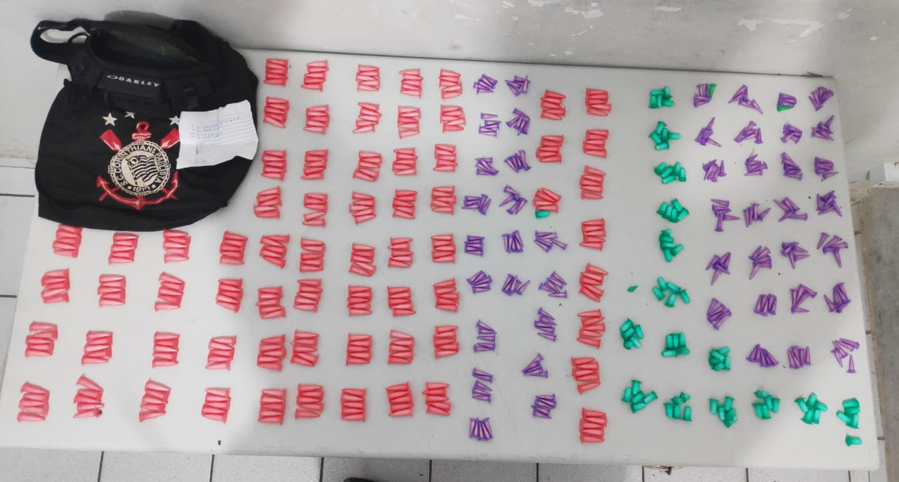 A dupla foi contida na rua Salvador Salgueiro e com eles foram localizados 410 pinos de cocaína e 236 pinos de crack, além da contabilidade do tráfico.