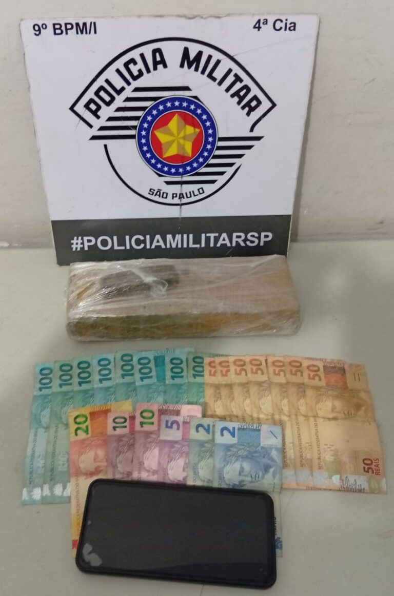 No imóvel, os policiais localizaram uma mochila com R$ 1.199 em dinheiro e um forte odor de maconha, além de um celular pertencente ao motorista.