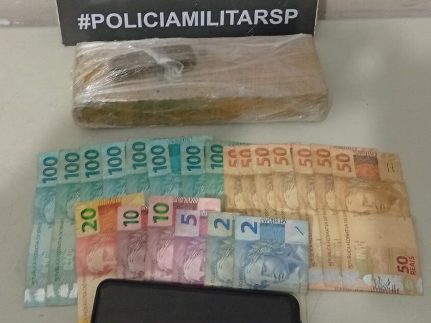 No imóvel, os policiais localizaram uma mochila com R$ 1.199 em dinheiro e um forte odor de maconha, além de um celular pertencente ao motorista.