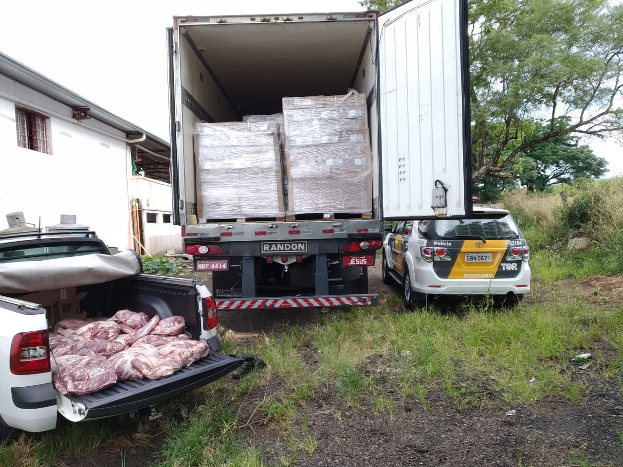Os militares surpreenderam o motorista da carreta carregada, que transportava carnes embaladas do frigorífico JBS Lins para Bauru, juntamente com outro homem em uma Volkswagen Saveiro, com placas de Lins.