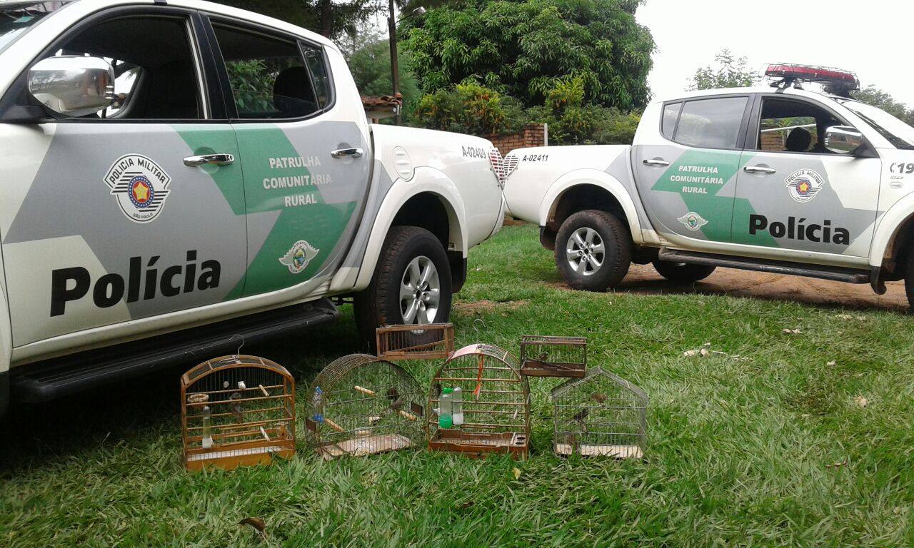 Policiais militares ambientais resgataram 7 pássaros da fauna nativa no distrito de Padre Nóbrega, zona norte de Marília, durante atendimento de denúncia no último sábado (26).