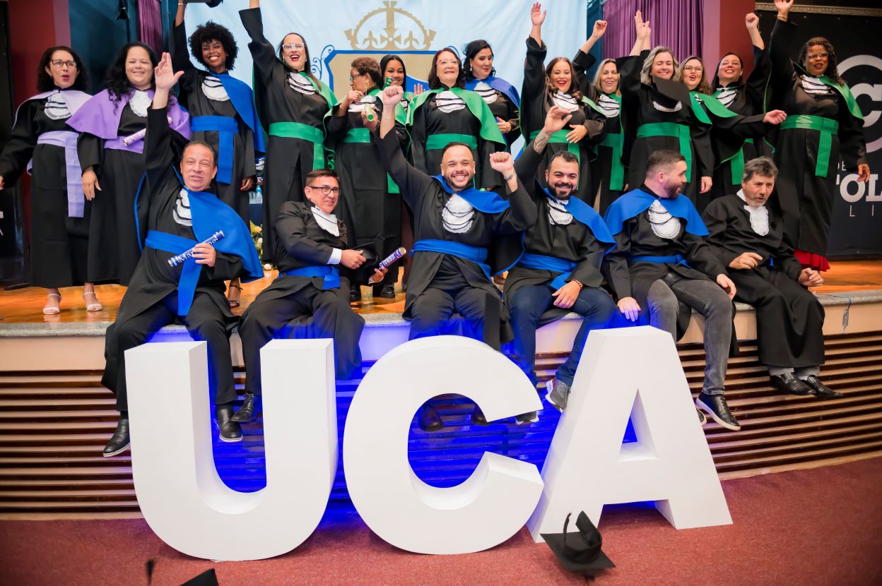 A Faculdade Católica Paulista (UCA) realizou, na noite de sexta-feira (12), a formatura dos concluintes de seus cursos de Educação a Distância (EaD). A cerimônia, marcada por emoção e celebração, reuniu formandos, familiares e amigos no anfiteatro do Colégio Sagrado Coração, em Marília, com transmissão online para todo o Brasil e até para outros países.