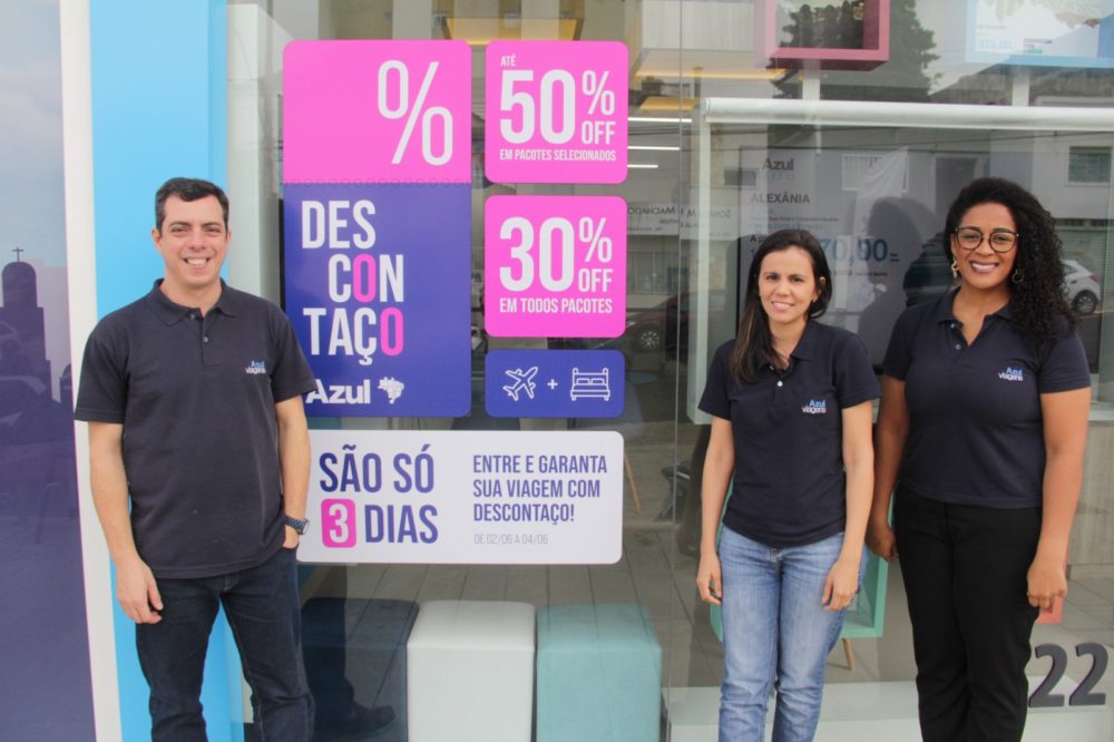 A agência da Azul Viagens de Marília participa, pelos próximos três dias, da campanha “Descontaço Azul”. De sexta-feira (2) a domingo (4), serão ofertados descontos de 30% e 50% em pacotes e hospedagens nacionais e internacionais.