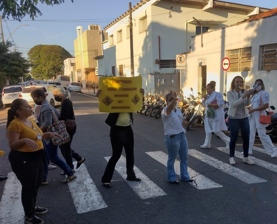 Em parceria com a Empresa Municipal de Mobilidade Urbana (Emdurb), a Santa Casa de Marília realizou ação para conscientizar motoristas a respeitarem a faixa de pedestres. Com cartazes e apitos, voluntários da campanha Maio Amarelo se manifestavam a cada veículo que parava na sinalização de solo existente próximo à entrada de funcionários do prédio do hospital, na rua 21 de Abril.