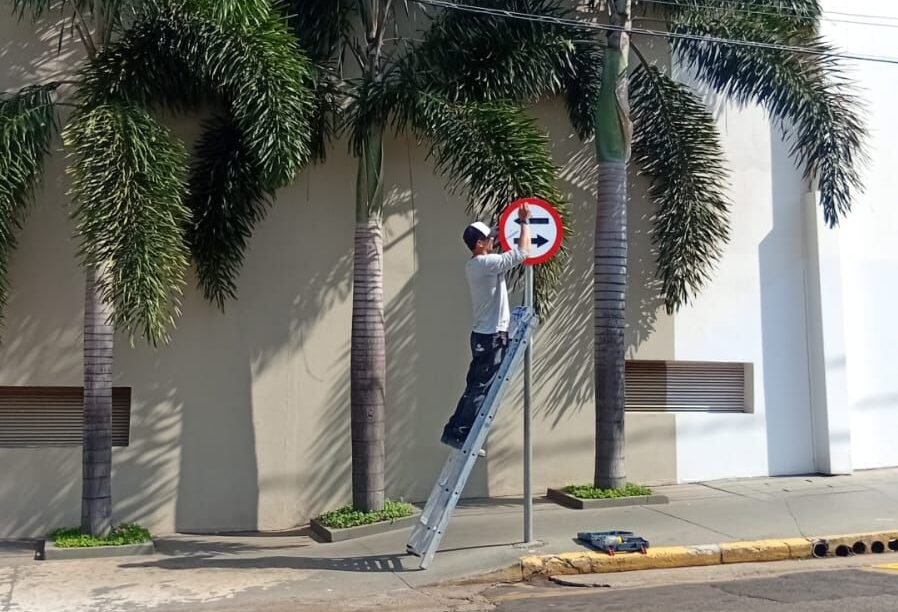 Finalizando as melhorias no trecho, foi feita pintura de sinalização e instalações de placas nas imediações do supermercado São Francisco, a fim de garantir que as alterações sejam seguras para motoristas e pedestres.