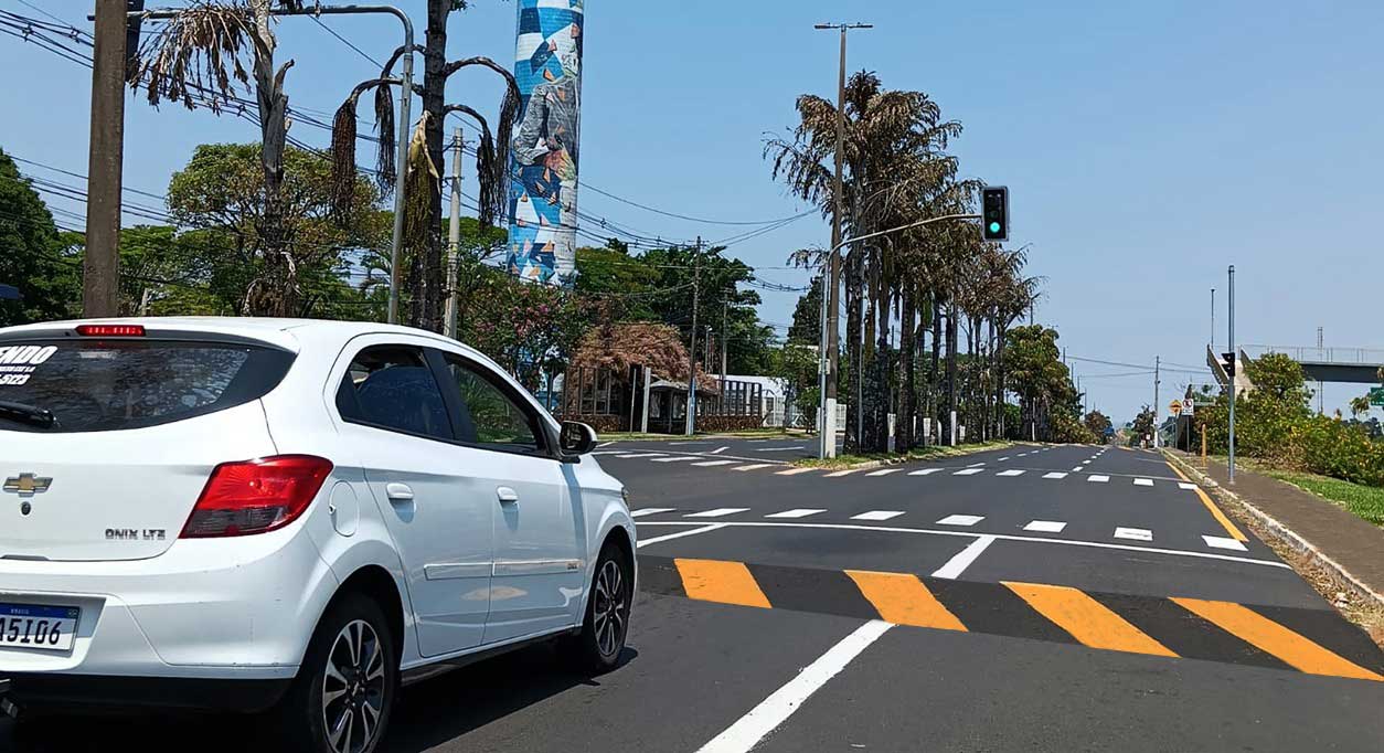 Entre as melhorias, estão o funcionamento do novo conjunto semafórico integrado com semáforos para pedestres na entrada do Univem, a implantação de novo redutor de velocidade e a colocação de placa aérea com indicações de rotas nas três pistas da avenida no sentido centro/bairro.