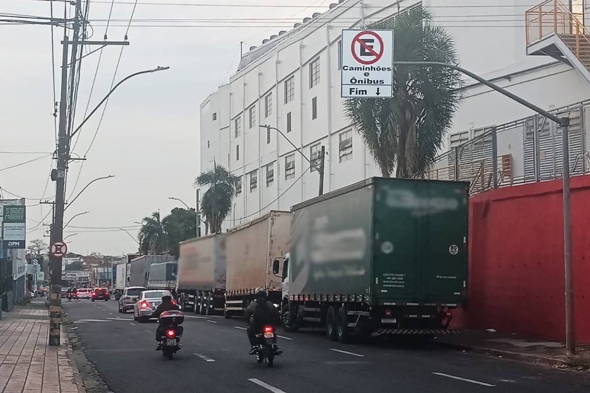 Também foi feita delimitação de estacionamento para ‘carga e descarga’, com permanência máxima de 30 minutos, no espaço imediatamente posterior ao portão da indústria.