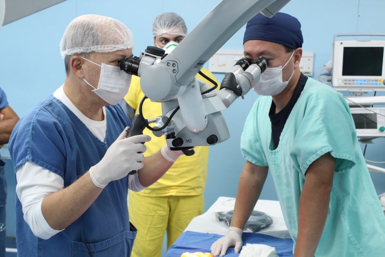 Profissionais do HBU passam por treinamento sobre uso do microscópio OPMI Sensera Zeiss (Foto: Divulgação/Assessoria de Imprensa)