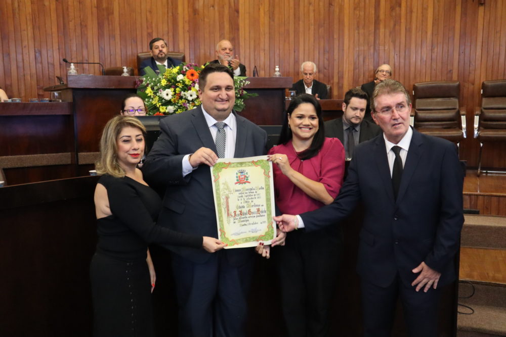 “Nós estamos felizes e o presente não é o senhor receber esse título. O senhor é o presente para Marília. É um enviado de Deus para nossa cidade. Que o senhor prospere e que mal nenhum te veja por onde passar. Tenho certeza de que Deus caminha ao seu lado, passo a passo”, exalta o vice-prefeito.