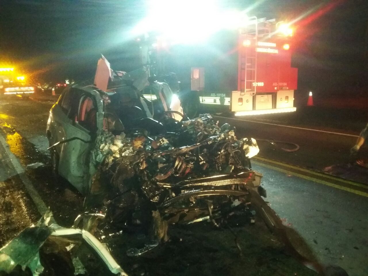 Carro destruído na rodovia SP-333 (Foto: Divulgação/Corpo de Bombeiros)