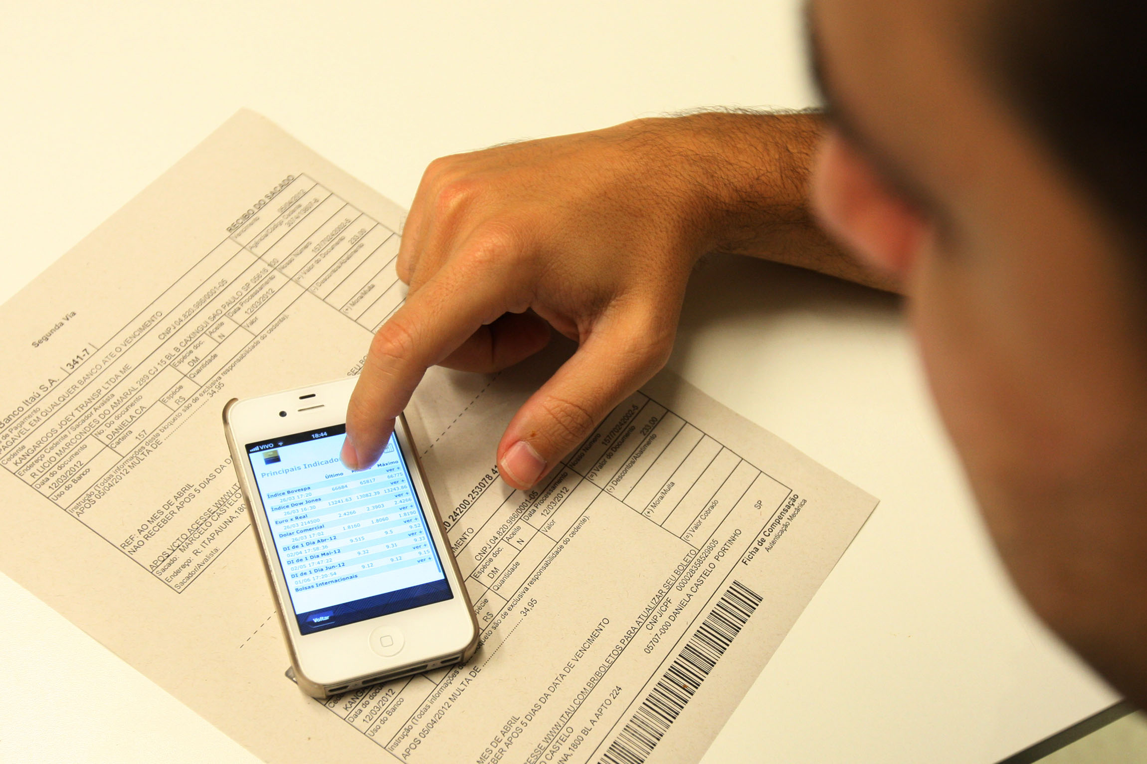 Brasil, São Paulo, 02/03/2012. Usuário efetua pagamento de fatura bancária utilizando-se do celular. - Crédito:ALEX SILVA/AGÊNCIA ESTADO/AE/Código imagem:121405