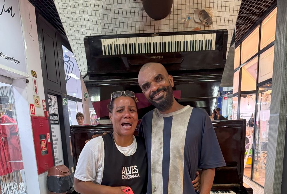 A gravação foi feita no início do expediente da semana por uma lojista, que flagrou Ivan tocando piano na área comum do shopping. Identificado como professor de música, mas atualmente vivendo em situação de rua, ele chamou a atenção de Geruza, funcionária terceirizada da limpeza, que se aproximou encantada com a melodia e pediu para cantar com ele.