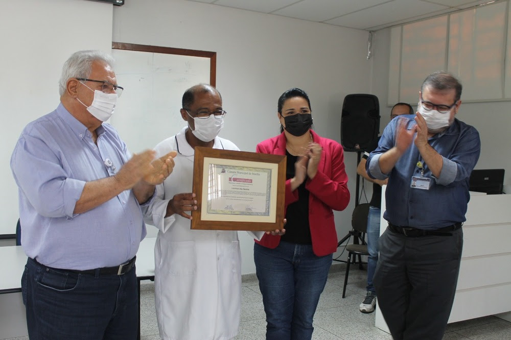 Com 35 anos de atuação na Santa Casa de Marília, o enfermeiro da Ortopedia Lourival dos Santos recebeu homenagem da Câmara Municipal, nesta última terça-feira (5), no salão de reuniões da unidade hospitalar.