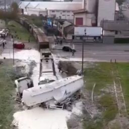 Para evitar atropelar a vítima, o motorista de uma carreta que vinha logo atrás freou bruscamente e desviou para a esquerda. Em seguida, outras duas carretas que seguiam no mesmo sentido tentaram desviar, mas uma delas acabou colidindo com uma árvore e com a outra carregada com gás, o que gerou bloqueio completo da pista.