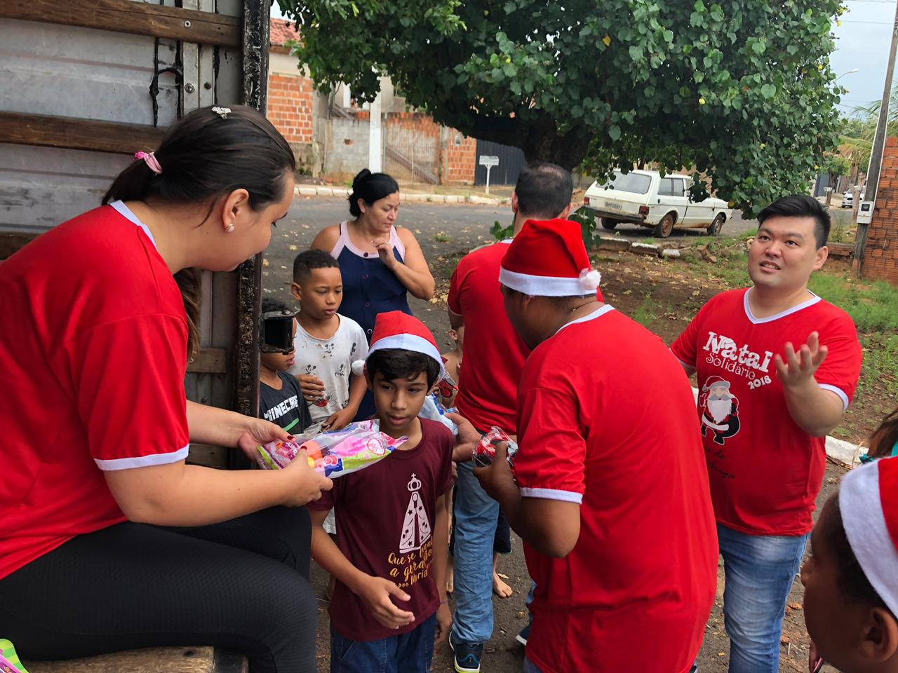 São mais de 20 voluntários que participam ativamente da entrega dos presentes vestidos com temas natalinos e gorro do Papai Noel. Os produtos deste ano já estão garantidos.