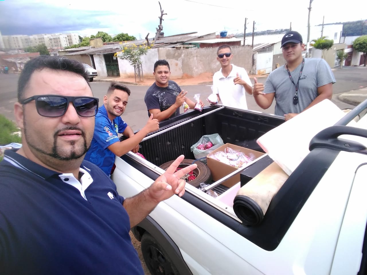 “São balas, doces e picolés que levamos para crianças do bairro Trieste Cavichiolli, Jardim Califórnia, Jardim Cavallari, Padre Nóbrega, Argollo Ferrão e Parque das Azaleias”, detalha o ativista social.