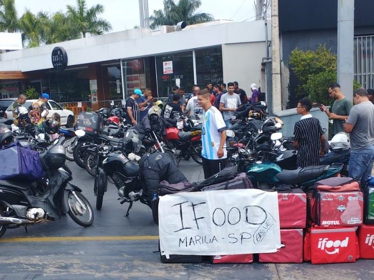 Pelo menos 100 motociclistas que prestam serviço de entrega ao aplicativo iFood participaram de paralisação realizada no último sábado (14). A convocação foi feita pelas redes sociais e por grupos de aplicativos de mensagem. Uma nova manifestação já é discutida entre a categoria.