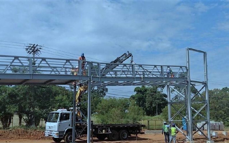 Para a operação será necessário o uso de um guindaste que movimentará a estrutura metálica pré-montada até a posição final de montagem.
