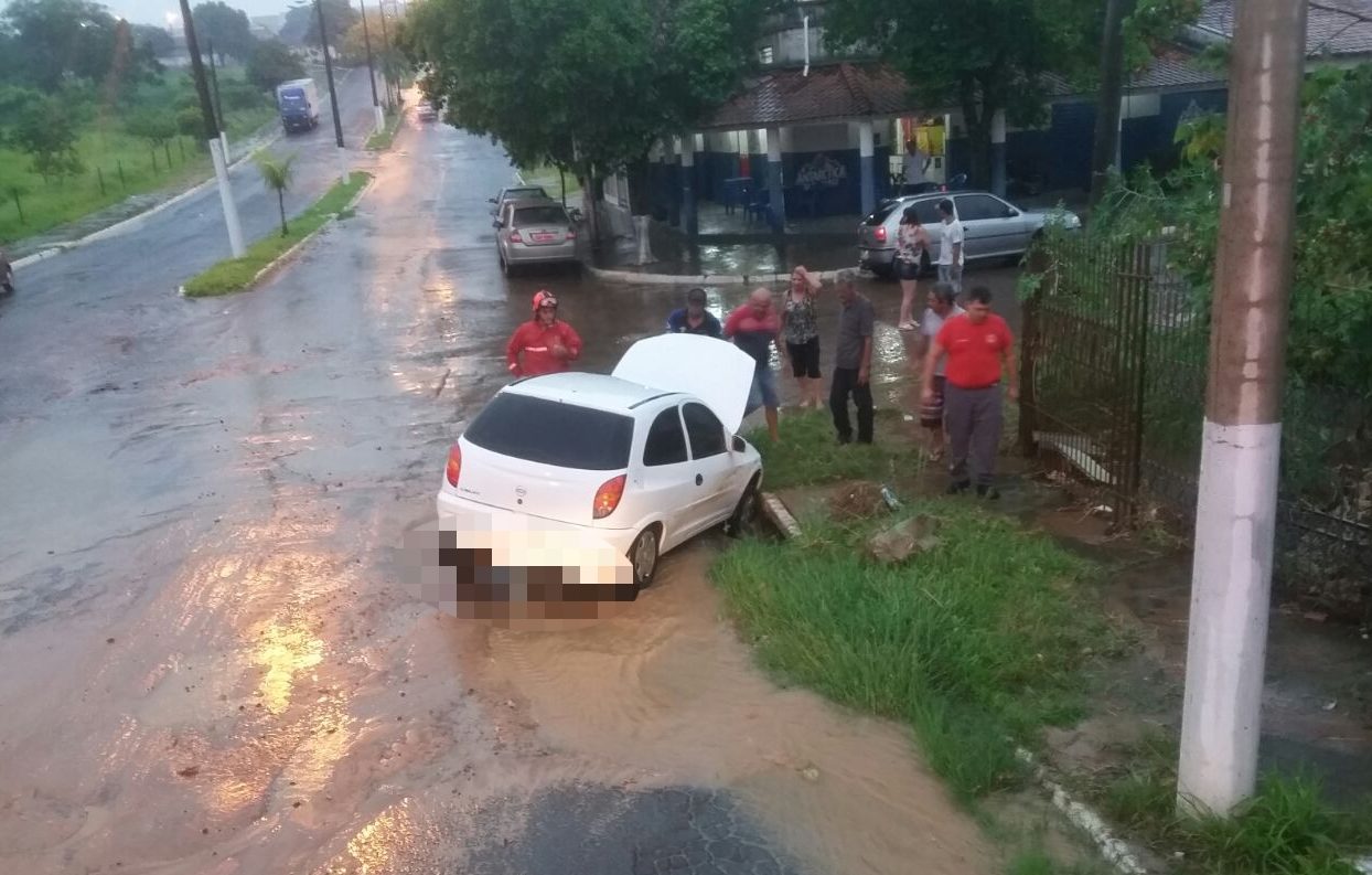 Uma mulher teve o carro em que estava arrastado pela enxurrada nesta quarta-feira (20) na zona Norte de Marília.