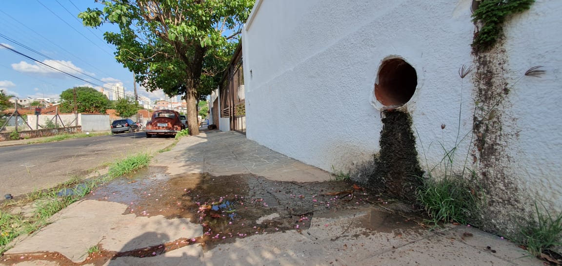 Quando chove, uma enxurrada que sai de dentro do Cemitério da Saudade, zona Oeste de Marília, segue o caminho de algumas dezenas de metros até sair em uma tubulação que fica a meio metro do chão na parede de uma residência.