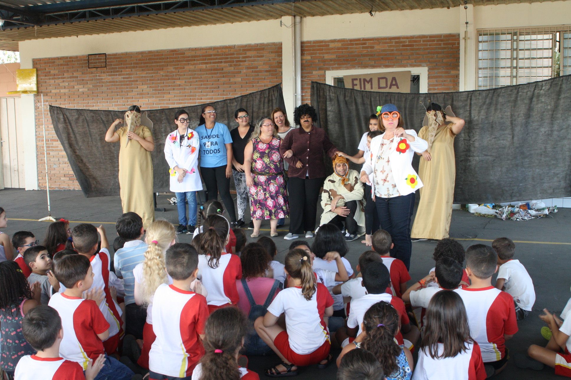 Eles aprenderam, de forma lúdica, sobre o perigo do lixo orgânico e da falta de cuidado com os cães para a transmissão da leishmaniose. O teatro “Fim da Picada”, com a equipe da USF (Unidade Saúde da Família) Figueirinha, impactou alunos da Emefei (Escola Municipal de Ensino Fundamental e Educação Infantil) Roberto Caetano Cimino.
