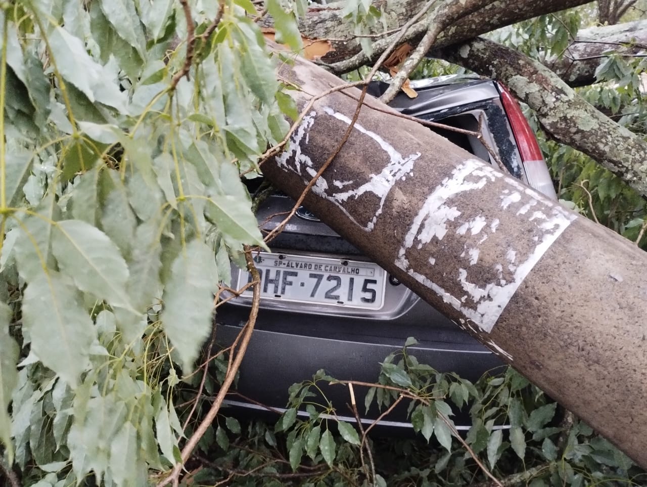 A forte tempestade que causou grandes transtornos na região de Marília derrubou várias árvores em Vera Cruz, incluindo uma que atingiu os veículos que estavam estacionados em frente à escola que a professora trabalha. Gisleine contou ao Marília Notícia como foi ao ser informada sobre a perda do carro.