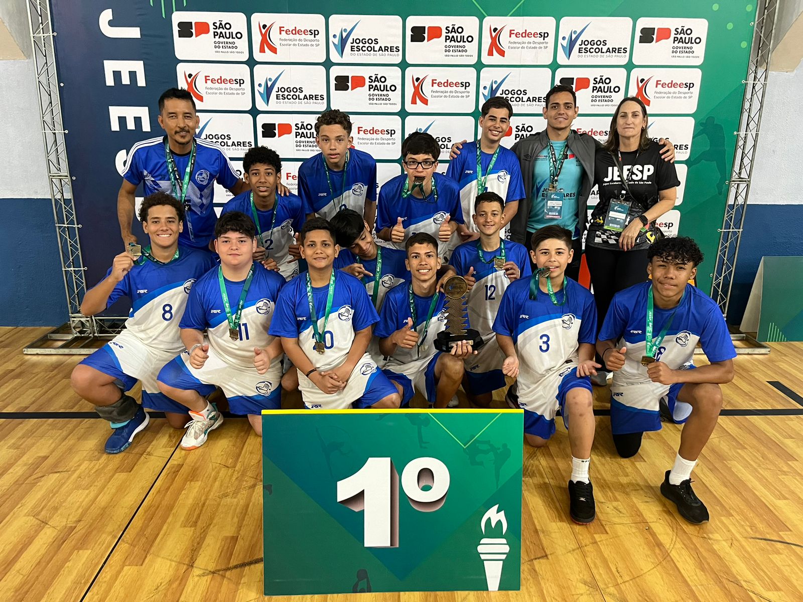 Vôlei masculino da E.E. Amor e Liberdade de Pompeia conquista ouro no JEESP. (Foto: Divulgação)