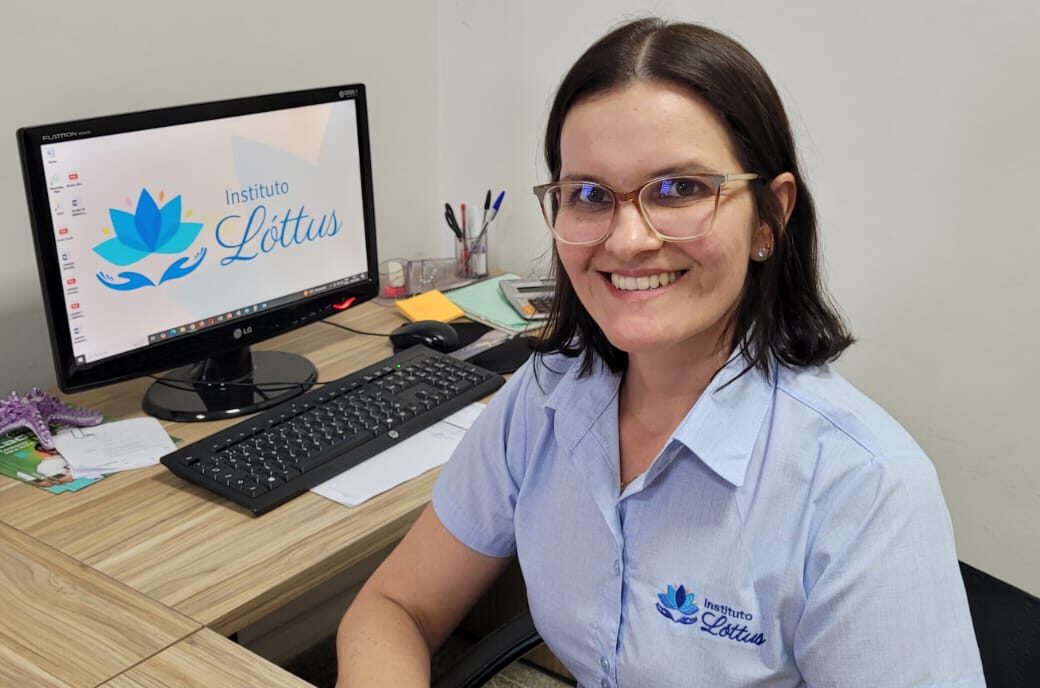 Milena começou como estagiária e, em três anos, tornou-se coordenadora da assistência social, representando a missão do Instituto Lóttus de promover o desenvolvimento integral e fortalecer os laços familiares e comunitários.