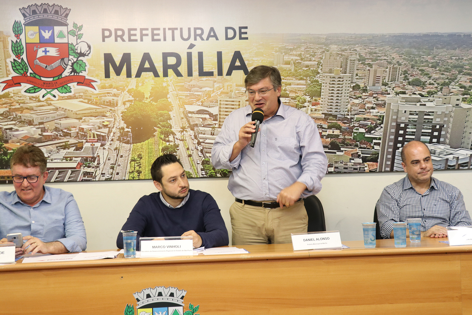 O prefeito Daniel Alonso (PSDB) e o secretário estadual de Desenvolvimento Regional, Marco Vinholi, anunciaram no último sábado, dia 7, no auditório do gabinete da Prefeitura (2º andar do Paço Municipal), investimentos em torno de R$ 15 milhões para Marília.