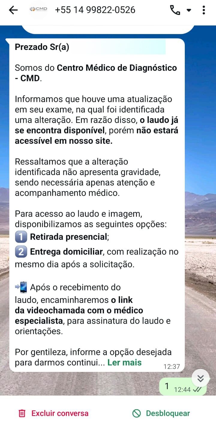 Em um dos casos registrados, um paciente compareceu pessoalmente ao CMD para relatar o ocorrido. Segundo a clínica, o exame mencionado pelos golpistas ainda não estava pronto e permanecia na unidade. A vítima, no entanto, recebeu diversas notificações no celular indicando transações realizadas em seu cartão de crédito.
