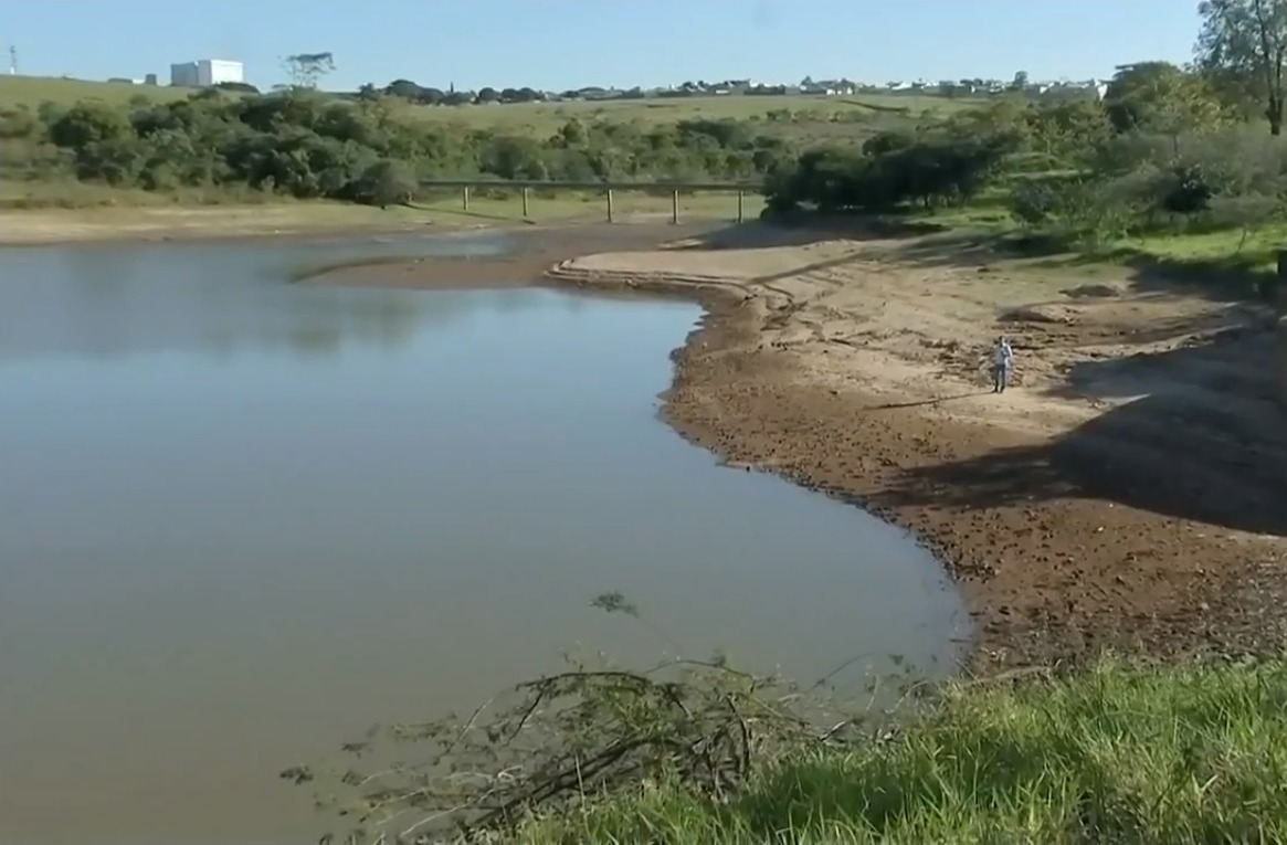 Represa Cascata está 3,5 metros abaixo do nível normal (Foto: TV Tem/Reprodução)