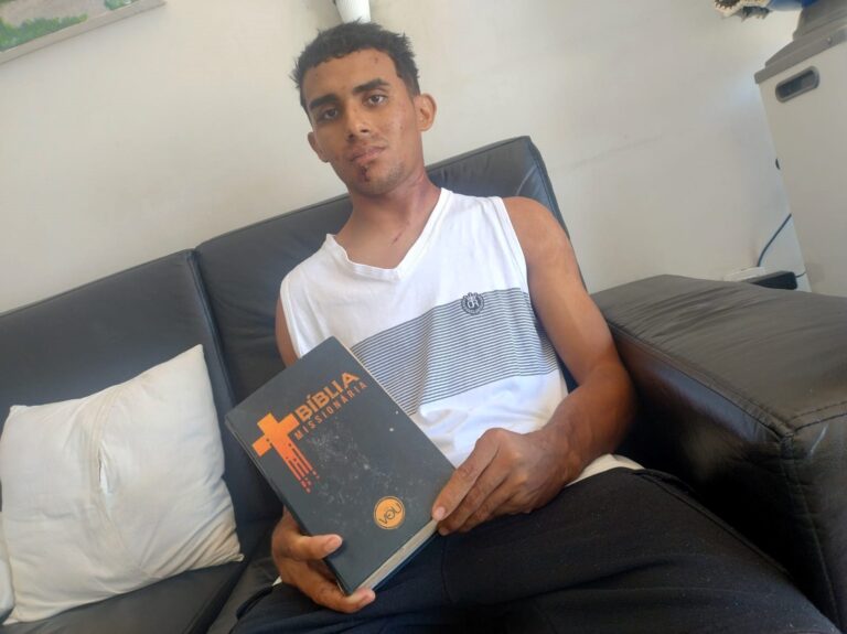 Ao chegar à casa de passagem, Carlos Eduardo trazia apenas uma mochila e uma Bíblia nas mãos. Assembleiano, relatou que sua primeira reação após o acidente foi de gratidão. “Quando eu me levantei e percebi que estava vivo, a minha primeira reação foi agradecer a Deus pela vida”, afirmou.