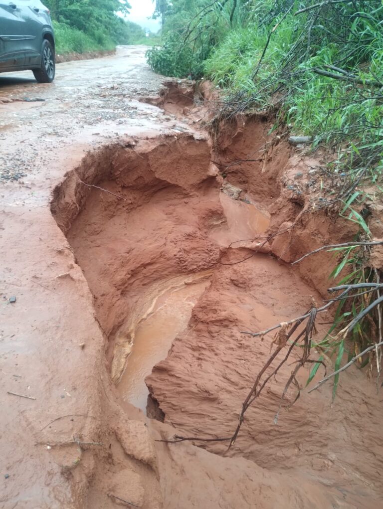 De acordo com os moradores, o problema se intensificou nas últimas semanas por causa das precipitações registradas na região. Em alguns trechos, a estrada apresenta buracos profundos e pontos de erosão que reduzem a largura da pista.
