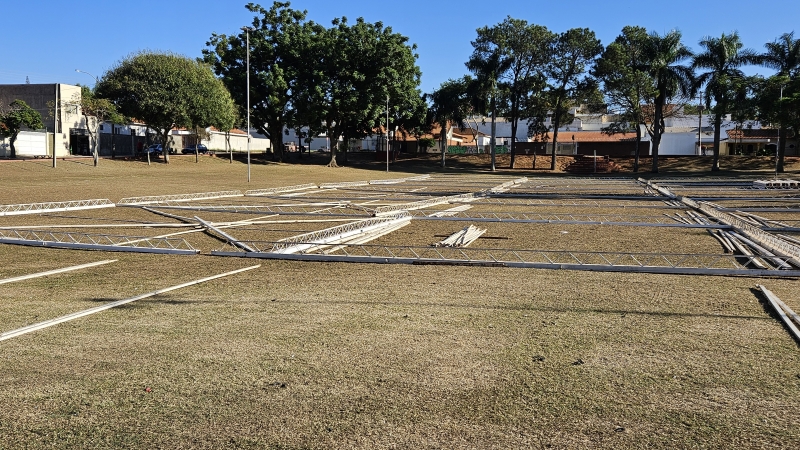 Os próximos itens da estrutura devem ser os brinquedos do parque de diversões do evento, que acontece de 27 a 30 deste mês.