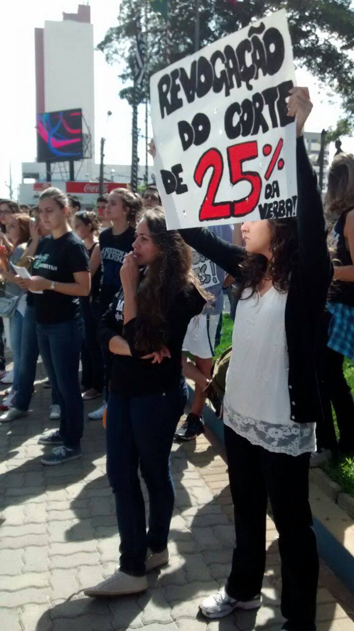 Estudantes da Faculdade de Medicina de Marília (Famema) realizaram um protesto hoje (29) pela manhã contra a redução de 25% nos repasses de recursos para a instituição.