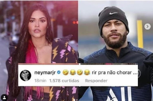 Logo depois uma página no Instagram sobre celebridades publicou a afirmação, e o jogador de futebol comentou a publicação. “Rir para não chorar”, ironizou Neymar. A mesma conta publicou o comentário do jogador, e então Flayslane se posicionou: “eu hein, vou passar por mentirosa só porque tu é o Neymar e eu não sou ninguém não. Agora eu estou com vergonha de ter ficado contigo”.