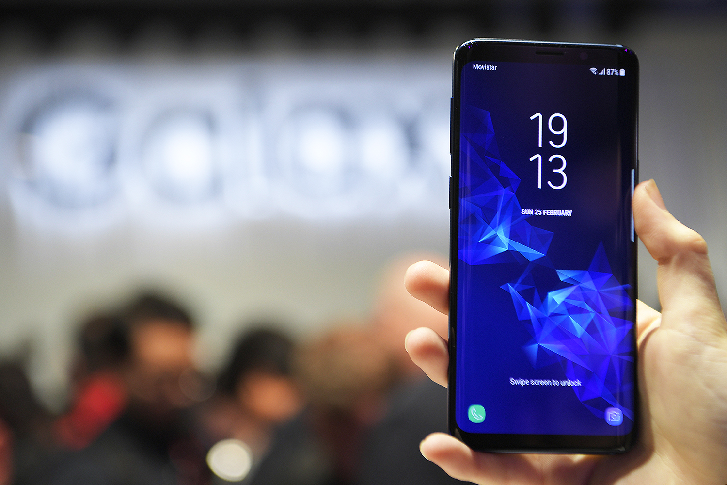 A woman holds a new Samsung Galaxy S9 mobilephone during the Samsung Galaxy S9 Unpacked event on February 25, 2018 in Barcelona, on the eve of the inauguration of the Mobile World Congress (MWC). The Mobile World Congress, the world's biggest mobile fair, is held in Barcelona from February 26 to March 1. / AFP PHOTO / LLUIS GENE