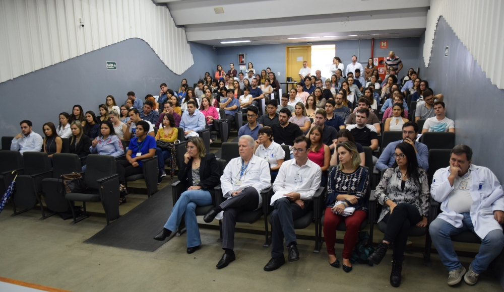 Na solenidade de abertura, os Coordenadores da Comissão de Residência Multiprofissional, Profa. Dra. Danielle Abdel Massih Pio e da Comissão de Residência Médica, Dr. Flávio Trentin Troncoso demonstraram o formato dos Programas aos residentes.