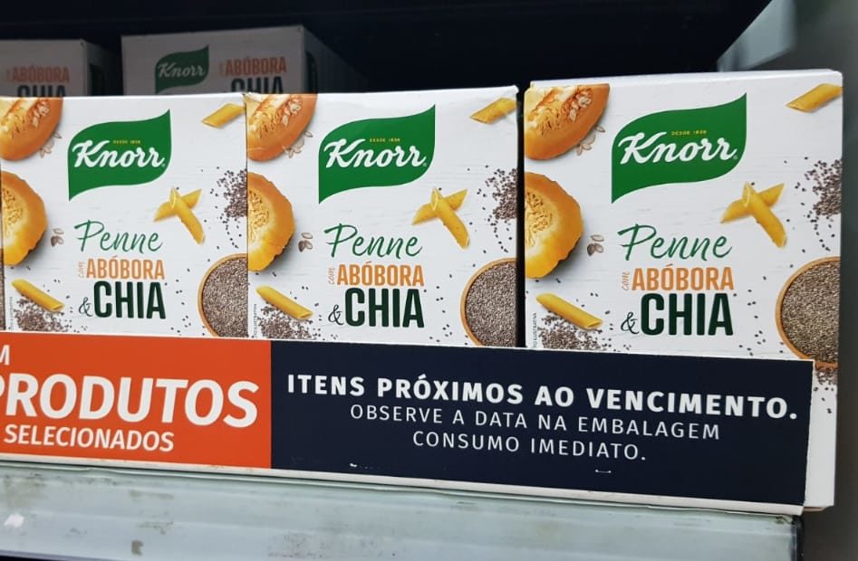 Na prateleira comum, o item custava R$ 3,89, mas o lote próximo do vencimento – com validade até o dia 17 de julho – podia ser adquirido por R$ 2,19.