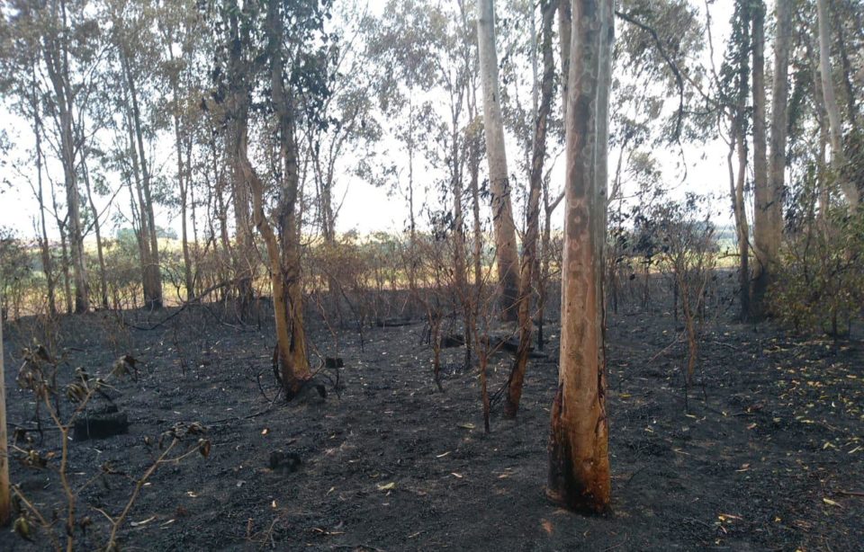 Os policiais constataram uma queimada em área comum, sendo que o fogo foi iniciado pelo funcionário da fazenda para erradicação de restos de galhos e folhas, vindo a perder o controle, o que fez com que as chamas atingissem área de pastagem, plantio de eucaliptos e restos de plantio de soja, total de 1,786 hectare.