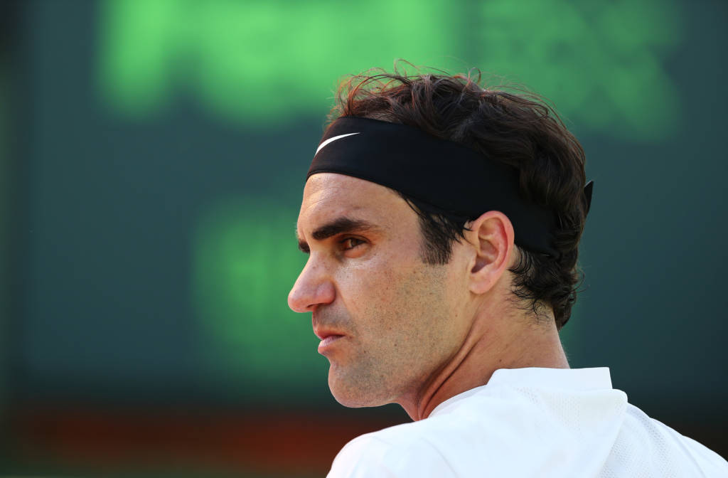 KEY BISCAYNE, FL - MARCH 24: Roger Federer of Switzerland reacts to a lost point against Thanasi Kokkinakis of Australia during his loss on Day 6 of the Miami Open at the Crandon Park Tennis Center on March 24, 2018 in Key Biscayne, Florida. Al Bello/Getty Images/AFP