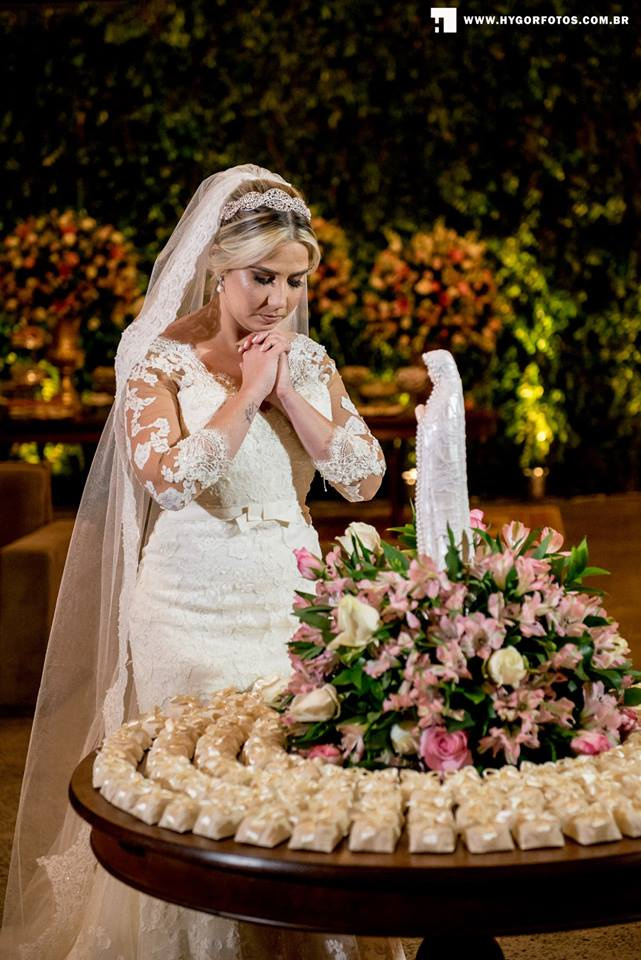 Diante da imagem de Nossa Senhora de Fatima, Tamyris professando sua devoção.