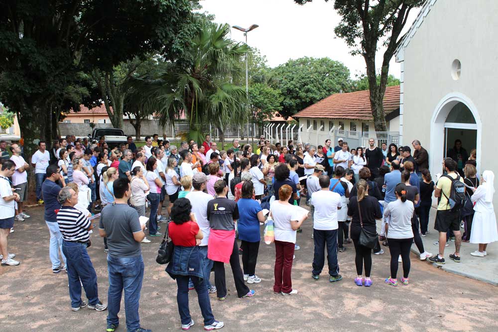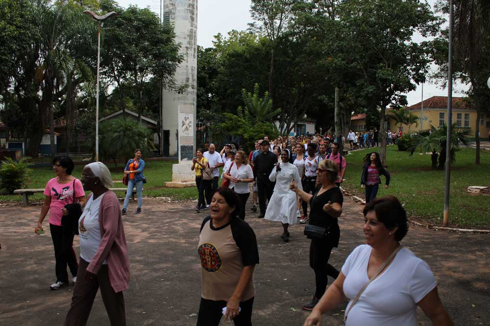 A caminhada começou por volta das 5h30. Foram 17 quilômetros percorridos, com 3 paradas para meditações pelo caminho. Em uma delas os peregrinos foram recebidos com festa pela comunidade da Capela Santa Luzia, de Lácio.