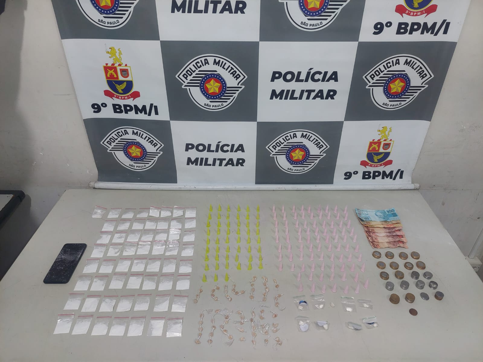 Após o acompanhamento, ele foi abordado em um posto de combustíveis. Na revista pessoal e no veículo, os policiais encontraram diversas porções de cocaína e crack, além de dinheiro e um celular.