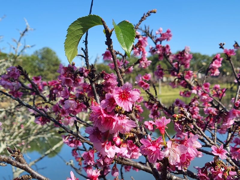 Ao todo são 660 árvores florindo no bosque das cerejeiras, localizado às margens do Lago Artificial J.K. Williams. Durante a florada, elas são motivo de atração de grande público.