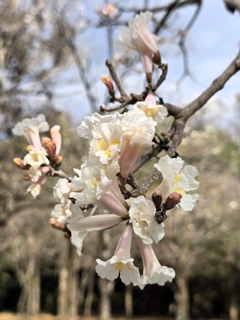 A florada do ipê-branco costuma aparecer entre julho e agosto, e marca a transição do inverno para a primavera. As flores formam um manto branco nas copas, mas duram apenas alguns dias. Por isso, vale aproveitar o momento enquanto ele está no auge.